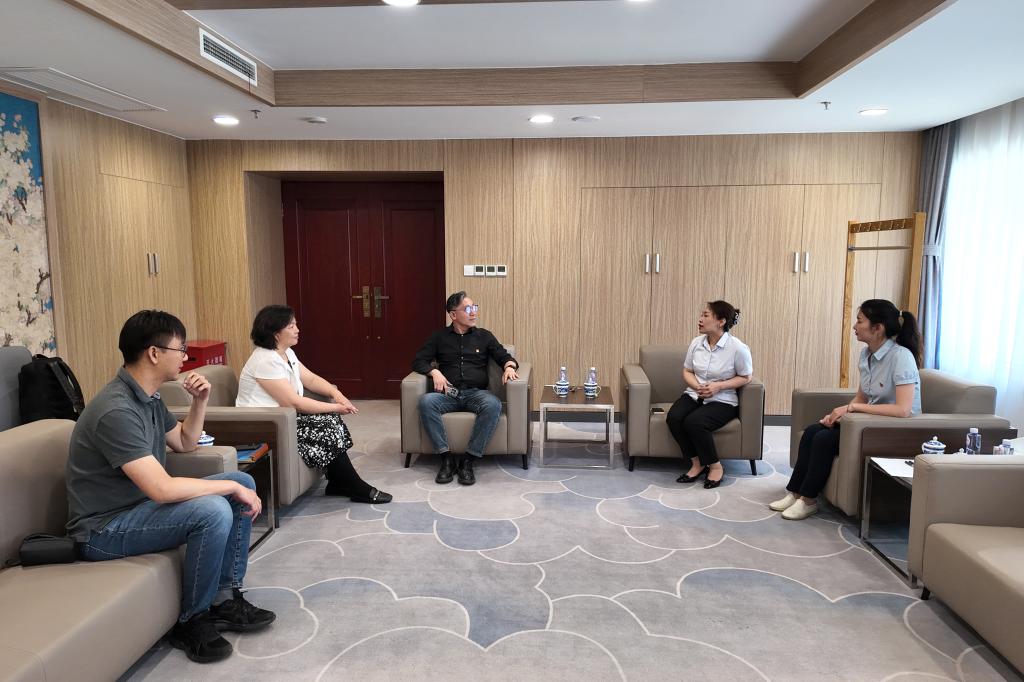 座談中,雙方相關負責人介紹了本單位的基本情況,并圍繞如何發揮紀念館教育職能和愛國主義教育基地與高校思想政治教育相結合等內容展開深入交流,并就紀念館進校園、手語導覽等工作達成共識。