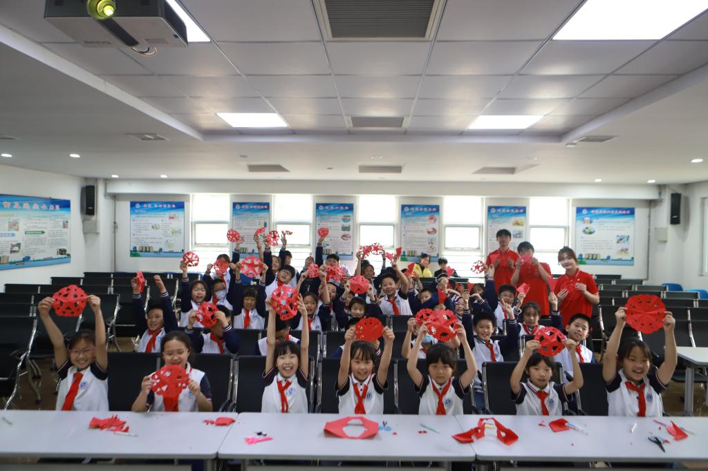 志愿者用通俗易懂的語言講述五四運動在中國近代史上的重要意義。現(xiàn)場廣大同學(xué)聚精會神、認(rèn)真聆聽、積極互動,并集體朗誦了《少年中國說》,并化身剪紙藝術(shù)的創(chuàng)作者,用靈巧的雙手剪出了各種與愛國主題相關(guān)的圖案,充分展現(xiàn)出少年們的蓬勃朝氣和對五四精神的傳承。