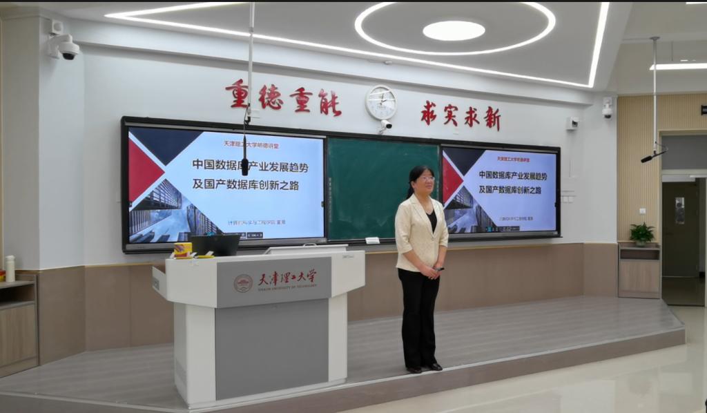 董晨從國(guó)內(nèi)外數(shù)據(jù)庫市場(chǎng)格局、國(guó)產(chǎn)數(shù)據(jù)庫發(fā)展與創(chuàng)新、KingBase數(shù)據(jù)庫發(fā)展與應(yīng)用三方面介紹了國(guó)產(chǎn)數(shù)據(jù)庫的發(fā)展與創(chuàng)新之路,并以人大金倉數(shù)據(jù)庫實(shí)現(xiàn)國(guó)家電網(wǎng)改造等大量真實(shí)、生動(dòng)的國(guó)內(nèi)外數(shù)據(jù)庫技術(shù)發(fā)展案例、工程與前沿技術(shù)等,幫助學(xué)生了解國(guó)產(chǎn)數(shù)據(jù)庫的艱辛發(fā)展及創(chuàng)新應(yīng)用。在講解過程中,她將專業(yè)知識(shí)與思政教育有機(jī)融合,使學(xué)生更加明確作為程序員的使命和責(zé)任。