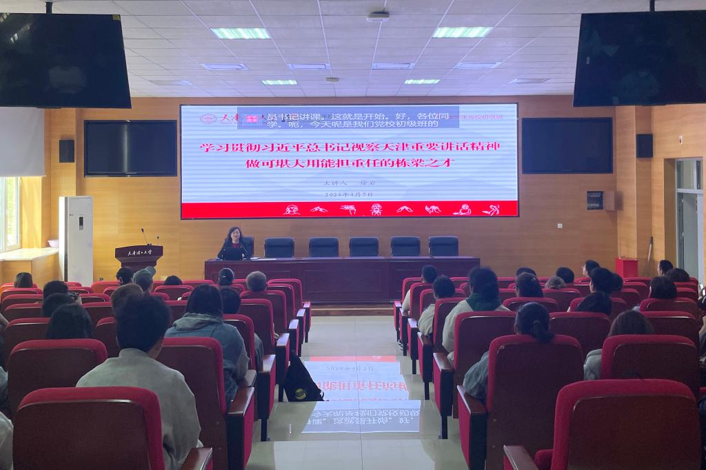 學(xué)院黨總支書記以《學(xué)習(xí)貫徹習(xí)近平總書記視察天津重要講話精神 做可堪大用能擔(dān)重任的棟梁之才》為題作了專題報(bào)告。她圍繞天津、學(xué)校、學(xué)院、個(gè)人四個(gè)層面,帶領(lǐng)大家深刻領(lǐng)會(huì)把握習(xí)近平總書記對(duì)天津工作的總體要求,全面學(xué)習(xí)貫徹習(xí)近平總書記對(duì)天津工作提出的“四個(gè)善作善成”重要要求,希望廣大同學(xué)志存高遠(yuǎn)、筑牢信念關(guān),勤學(xué)苦練、過好學(xué)業(yè)關(guān),奮發(fā)蹈厲、修煉本領(lǐng)關(guān),擔(dān)當(dāng)作為、扎實(shí)行動(dòng)關(guān),牢記殷殷囑托,奮力譜寫中國式現(xiàn)代化天津篇章。