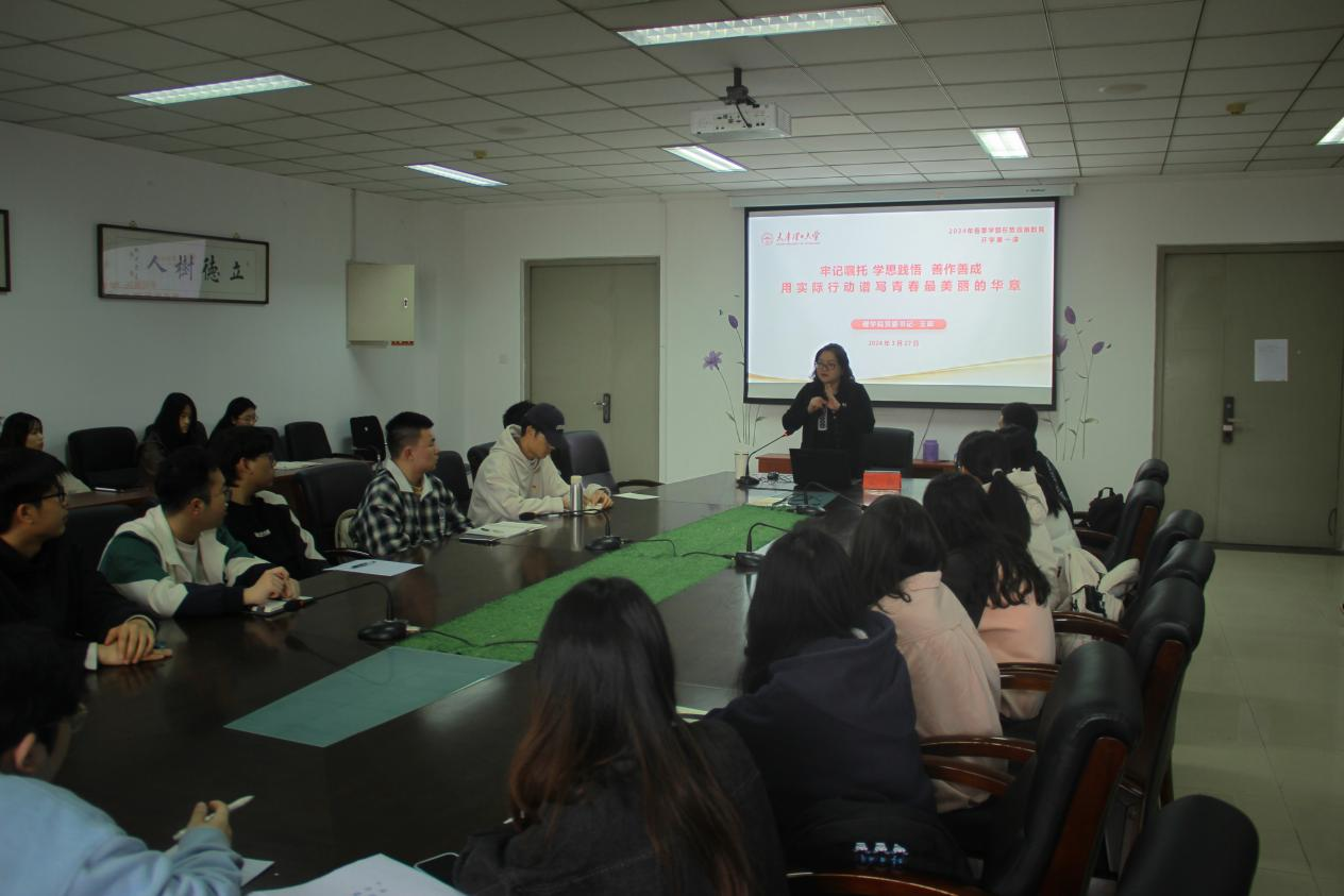 學院黨委主要負責同志講授題為“牢記囑托 學思踐悟 善作善成 用實際行動譜寫青春最美麗的華章”的主題黨課,帶領學生黨員和入黨積極分子共同學習領會習近平總書記視察天津重要講話精神,學習貫徹習近平文化思想,勉勵學生們要牢記囑托,自覺踐行“四個善作善成”的重要要求,傳承“重德重能、求實求新”校訓精神,做挺膺擔當?shù)男聲r代天理人,為推動強國建設、民族復興偉業(yè)貢獻青春力量。