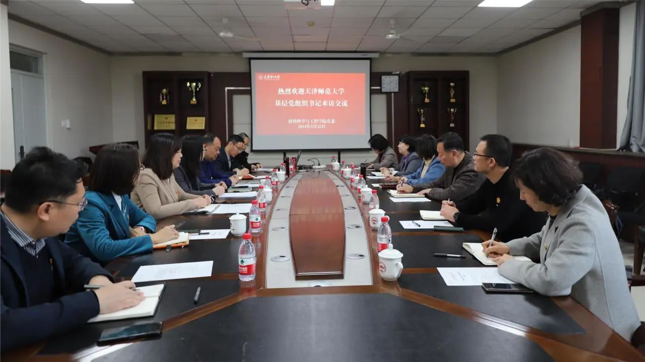 3月22日,天津師范大學學前教育學院(高職學院)、政治與行政學院、化學學院、生命科學學院、數學科學學院、計算機與信息工程學院黨委主要負責同志到訪我校開展基層黨建工作調研交流。我校集成電路科學與工程學院、材料科學與工程學院、計算機科學與工程學院、社會發展學院黨委主要負責同志參加了調研交流。會前,學校黨委組織部相關負責同志與師范大學來訪同志進行了會談交流。