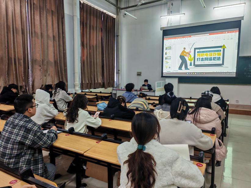 學苑派出所民警為學生詳細講解了電信詐騙的特點和趨勢,介紹了近期常見的電信詐騙手段和識別方法,通報了典型電信詐騙案例,以案說法、以警示人,深入淺出地普及防范電信網絡詐騙安全常識,讓學生增強反詐意識,提高警惕,避免上當受騙。