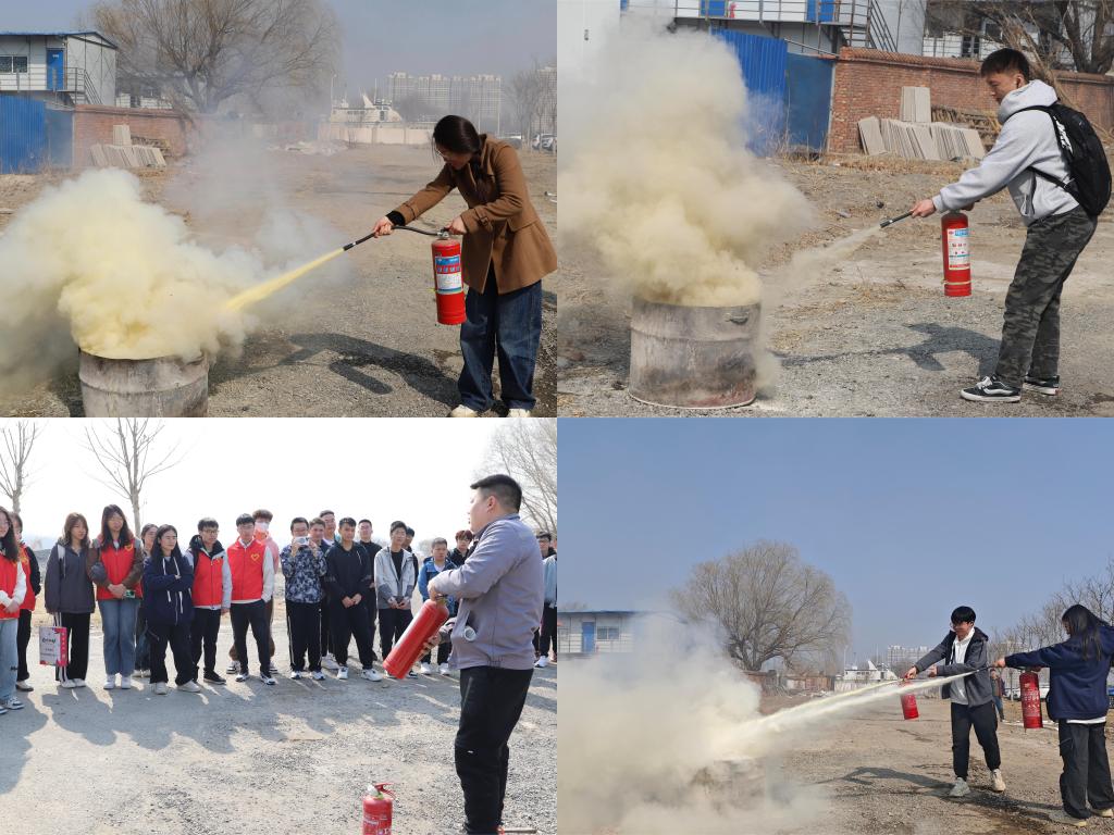 在室外演練中,保衛處工作人員細致講解了干粉滅火器使用時的有效距離、使用角度、站立位置要求等注意事項,并模擬火災現場,教授師生手操滅火器演示滅火過程,加深了師生對消防知識的理解。