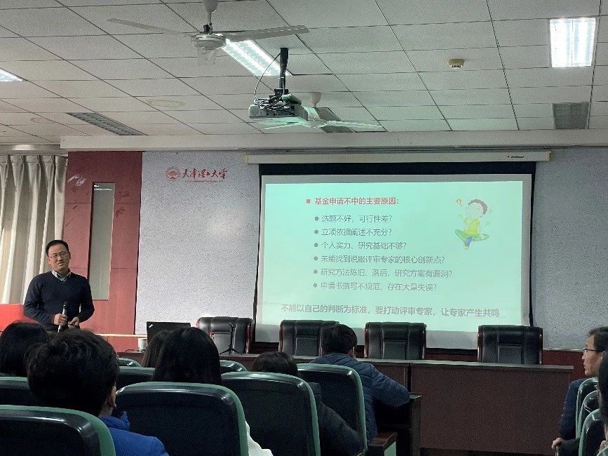 近日,材料科學與工程學院和新能源材料與低碳技術研究院在12號樓506會議室聯合開展國家自然科學基金申報推動會,活動邀請到國家杰出青年基金獲得者、南開大學李福軍教授作《國家自然科學基金申報經驗與教訓》的專題報告,60余名教師現場參會。