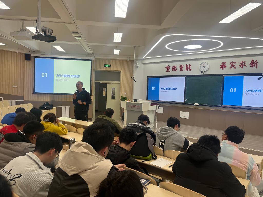 在講座中,公司相關負責人回顧了自己的工作經歷,簡要介紹了自己的履歷,以及在人力資源、運營管理方面的從業經驗,并從為什么要做職業規劃、什么是職業規劃、如何快速進入職業角色、如何有效提升職業能力四個方面入手,幫助同學們厘清個人職業目標,制定合理的職業目標,又從企業選人、用人的角度為同學們生動的講解了即將開始的求職之旅,包括簡歷的準備、面試官的關注點、能力提升方法等,幫助同學們順利找到理想工作。