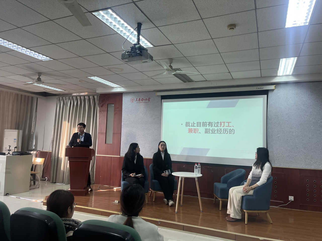 訪談中,楊松學長詳細講述了自己的學習生涯、職業(yè)選擇、工作經(jīng)歷等內(nèi)容,與同學們進行深入交流,為同學們答疑解惑,并建議同學們要充分了解自身現(xiàn)狀,學會獨立思考,做好終身規(guī)劃,鍛煉職業(yè)素養(yǎng),努力提升就業(yè)能力。