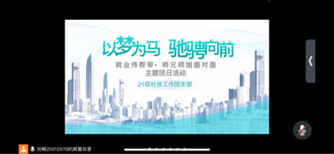 近日,社會發展學院組織開展“就業傳幫帶?師兄師姐面對面”主題團日活動,邀請具有豐富就業經驗的畢業生進行交流和分享。