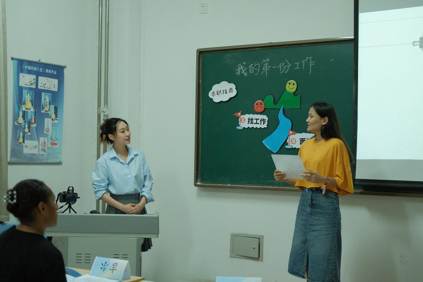由語言文化學院五位同學組成的團隊在指導教師楊會的帶領下,從組織團隊備課,研學往屆活動教學視頻、開展頭腦風暴,到反復打磨教學內容,再到教學視頻的錄制、材料的提交,歷時4個月,完成了教學成果的展示。課程以OBE目標導向教育理念和任務型教學法為基礎,緊密圍繞教學主題“使外國人了解如何在中國找工作、面試并且生成一份《求職指南》”,對教學內容進行重構、實施和評價,讓學生們更好地了解自己、感知當代中國,實現個人的職業發展。在詞匯、語法教學方面,團隊采用了“隱性教學法”,通過觀看視頻等方式,在可理解的語境下自然習得目的語詞匯和語法。