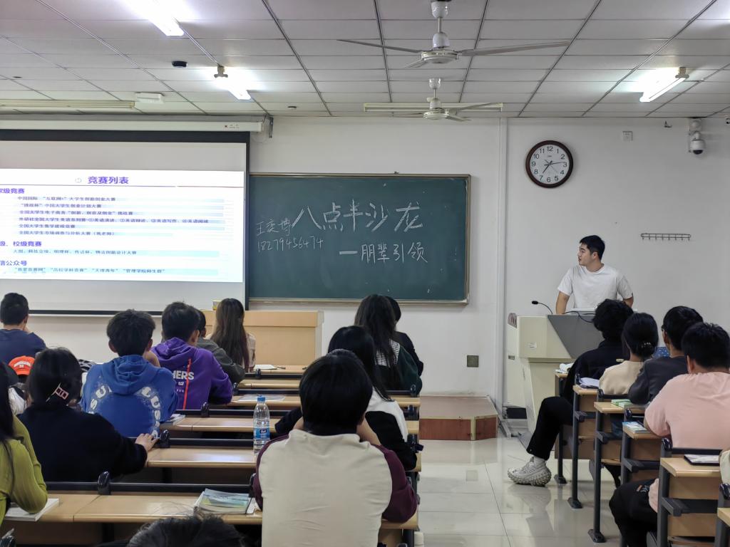近日,管理學(xué)院晚自習(xí)時間面向2023級學(xué)生連續(xù)開展7場“八點(diǎn)半”朋輩沙龍活動。