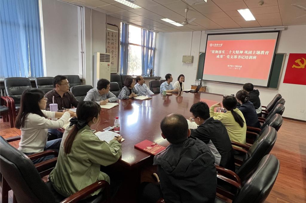 本次培訓班歷時兩天,分為理論學習、工作實訓、督導檢查和交流研討四個環節。在培訓班上,學院黨委相關負責同志傳達了學校黨委黨建工作例會會議精神以及近期學院的相關工作部署,參訓人員對黨的二十大精神以及《中國共產黨章程》《中國共產黨組織工作條例》《中國共產黨普通高等學校基層組織工作條例》等黨內法規進行了集中學習。學院相關負責同志圍繞黨支部換屆選舉、黨員發展、黨員教育管理、主題黨日、黨費管理及使用、支部手冊記錄等專題進行了詳細講解。