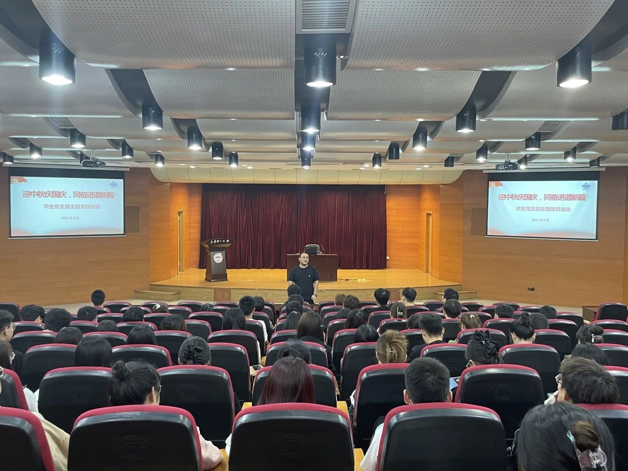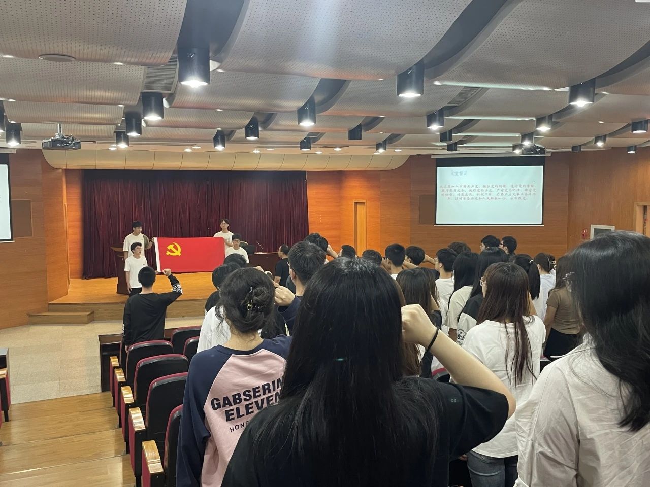 隨后,全體黨員共同觀看《開國大典》,讓黨員們置身其中,感悟中國力量,激發愛黨、愛國、愛社會主義情感,立志爭做優秀共產黨員,書寫青春奮進的華章。