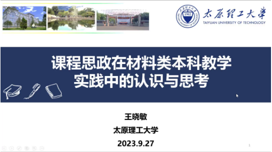 王曉敏以《課程思政在材料類本科教學實踐中的認識與思考》為題開展專題講座,他從課程思政建設開展的重要性和必要性出發,明確課程思政實施在育人工作中的重要意義,分析課程思政和思政課程間的緊密聯系和各自特點。隨后,她就太原理工大學材料學院在課程思政中的具體實踐進行梳理和總結,介紹了思政元素與專業課程融合方式、評價體系和考察方式、教風學風建設相結合等方面的一些具體做法,同時凝練出了在實施工作中的六條主線。