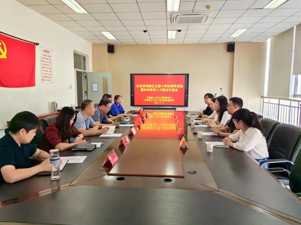 近日,濱海新區(qū)玉簪小學(xué)校長石莉一行5人來我校工程訓(xùn)練中心調(diào)研,就科技服務(wù)、科普教育及科學(xué)課程等主題進(jìn)行交流。