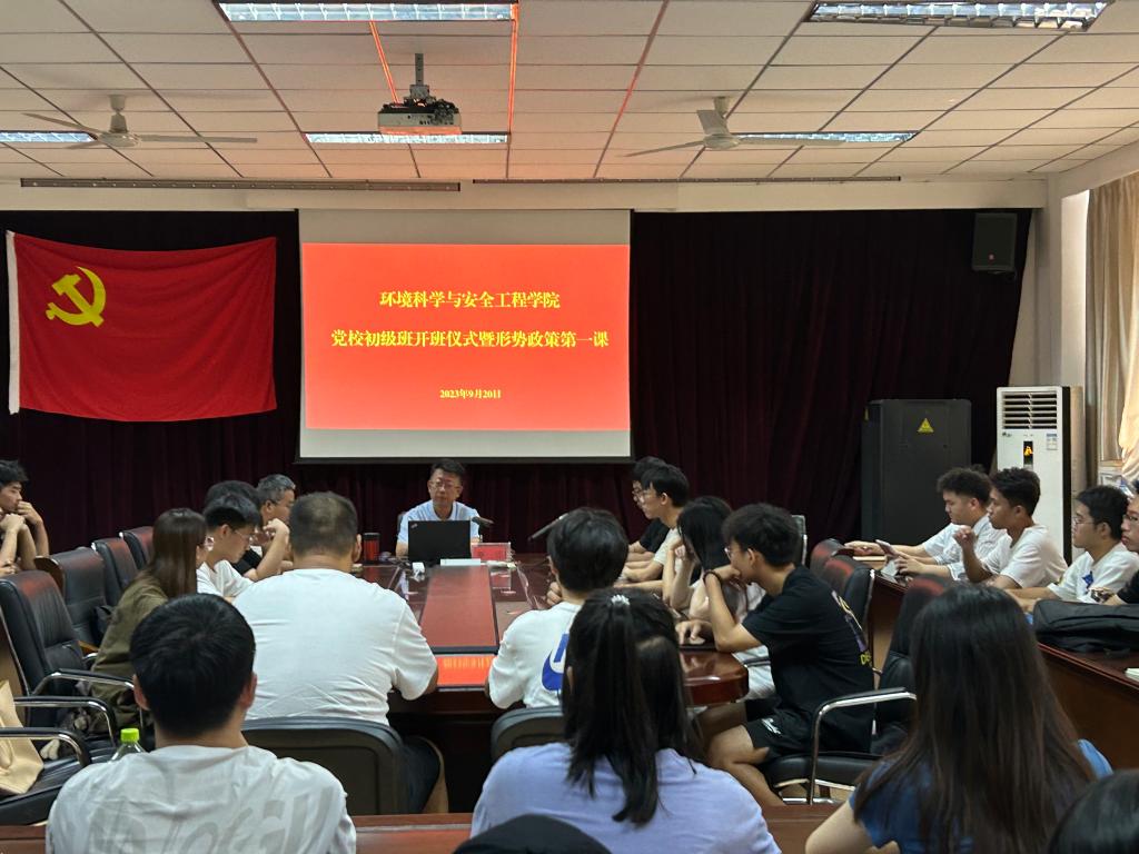 近日,環境科學與安全工程學院舉行2023-2024學年第一學期黨校初級班開班儀式暨形勢與政策第一課。