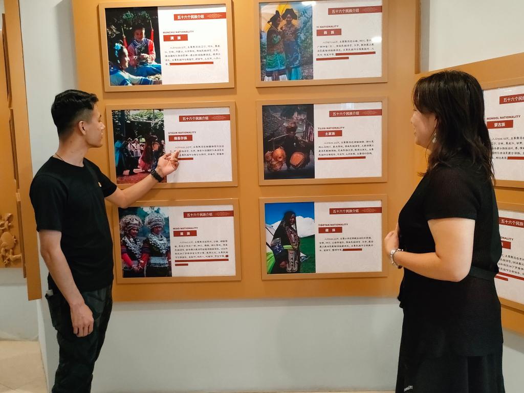 少數民族同學紛紛結合文化宮內的展陳,為大家介紹自己家鄉的風土人情與民族文化。同學們從家鄉的氣候、美食、風俗、生活等方面為大家作了分享,并紛紛邀請大家來家鄉做客,感受當地樸素熱情的風土人情。