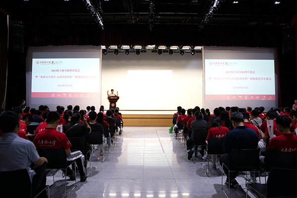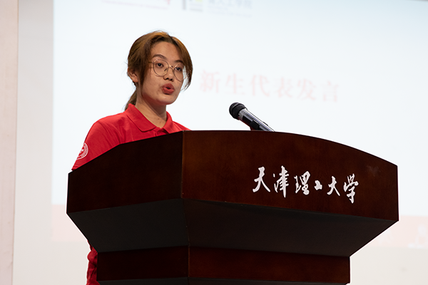 2023級新生代表馮一州講述了初入天理的溫暖感受,號召大家堅定理想信念,勤奮刻苦學習,不負時代重托,踐行青年使命。