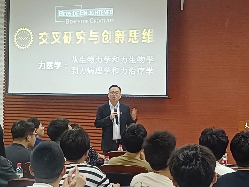日前,應(yīng)天津市先進(jìn)機(jī)電系統(tǒng)設(shè)計(jì)與智能控制重點(diǎn)實(shí)驗(yàn)室邀請(qǐng),西安交通大學(xué)生命學(xué)院院長(zhǎng)徐峰教授來(lái)校進(jìn)行學(xué)術(shù)交流訪問(wèn),并作題為《交叉研究與創(chuàng)新思維——力醫(yī)學(xué):從生物力學(xué)和力生物學(xué)到力病理學(xué)和力治療學(xué)》的學(xué)術(shù)報(bào)告。機(jī)械工程學(xué)院、生命健康智能檢測(cè)研究院、天津大學(xué)力學(xué)系、武警特色醫(yī)學(xué)中心等單位100余名師生參加了本次學(xué)術(shù)交流。