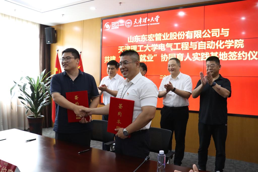 濟(jì)寧市工業(yè)和信息化局、山東東宏管業(yè)股份有限公司和學(xué)校科技處、電氣工程與自動(dòng)化學(xué)院有關(guān)負(fù)責(zé)人以及實(shí)踐團(tuán)全體成員參加了共建實(shí)踐基地簽約儀式。建立校企共建實(shí)踐基地,是探索構(gòu)建產(chǎn)教融合背景下校企深度合作育人機(jī)制的有力實(shí)踐,雙方將本著“共同育人、互惠雙贏”的原則,充分發(fā)揮各自的資源優(yōu)勢(shì),實(shí)現(xiàn)產(chǎn)業(yè)鏈、創(chuàng)新鏈、教育鏈、人才鏈的“四鏈貫通”,打造校企合作新典范,為學(xué)校高水平人才培養(yǎng)和地方產(chǎn)業(yè)高質(zhì)量發(fā)展作出更大貢獻(xiàn)。