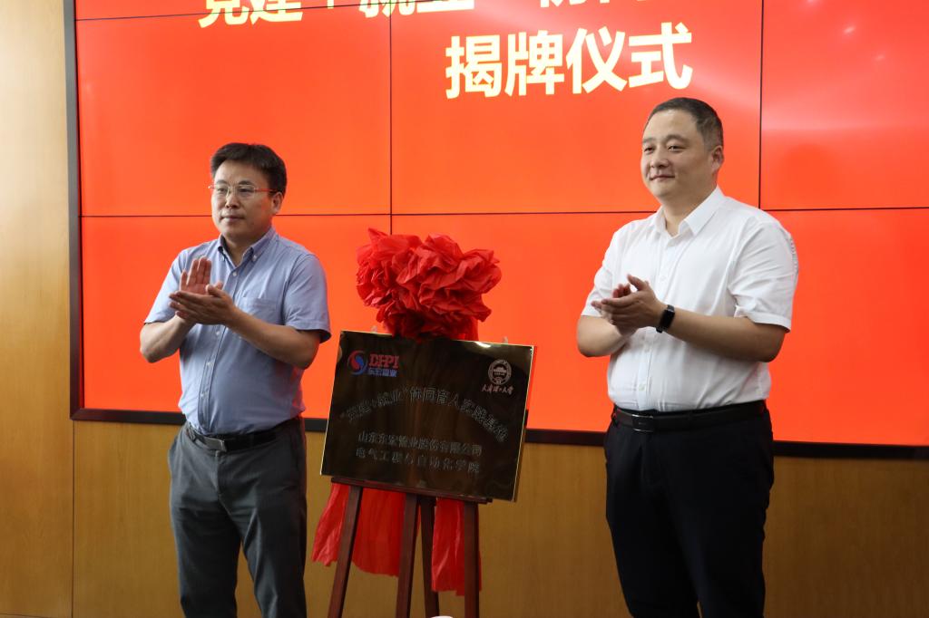 學(xué)校科技處相關(guān)負(fù)責(zé)人與濟(jì)寧市工業(yè)和信息化局相關(guān)負(fù)責(zé)人為“黨建+就業(yè)”協(xié)同育人實(shí)踐基地揭牌;電氣工程與自動(dòng)化學(xué)院有關(guān)負(fù)責(zé)人與山東東宏管業(yè)股份有限公司有關(guān)負(fù)責(zé)人簽訂“黨建+就業(yè)”協(xié)同育人實(shí)踐基地共建協(xié)議。雙方一致表示,將以此次協(xié)議簽署為新起點(diǎn),推動(dòng)校企合作各項(xiàng)事宜落地落實(shí),為校企人才培養(yǎng)、科技研發(fā)作出新貢獻(xiàn)。
