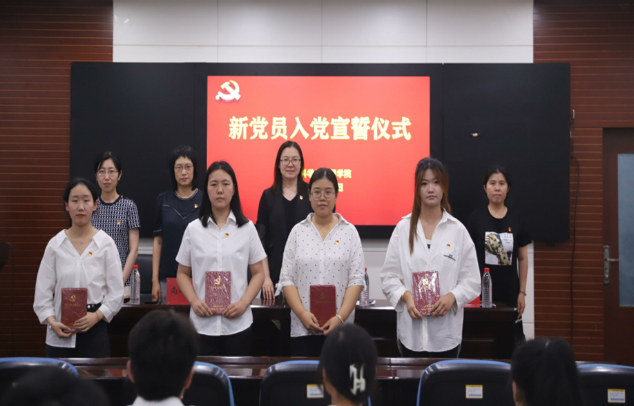 活動在莊嚴的國歌聲中開始。首先學院黨委負責同志宣讀了接收預備黨員的決定。出席儀式的領導、老師們為預備黨員佩戴黨員徽章,發放黨員學習筆記本。隨后舉行新黨員入黨宣誓儀式,黨委書記從蓉領誓,41名新黨員面向黨旗莊嚴宣誓,表達對黨忠誠、永不叛黨和愿意為共產主義奮斗終身的決心。
