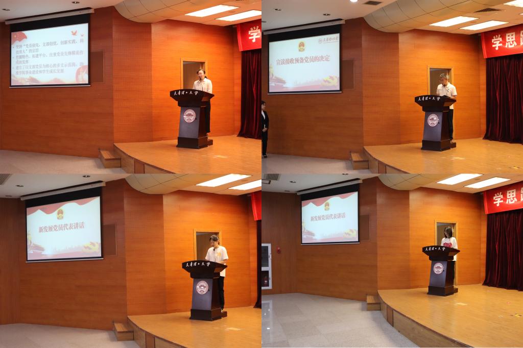 隨后,學院黨委書記邵邠同志帶領37名新黨員面向黨旗進行入黨宣誓,與會師生黨員一起重溫入黨誓詞。邵邠同志表示,作為新時代的共產黨員,希望大家牢記習近平總書記的諄諄教誨,堅守共產黨人精神追求,牢記共產黨人初心使命,永葆共產黨人政治本色。