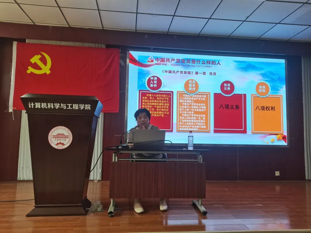 最后,馬紅健老師面向預備黨員開展《我入黨了》專題黨課。馬老師從一生的政治選擇出發,向預備黨員們講解了黨員的義務與權利,鼓勵預備黨員們堅定理想信念,不忘初心使命,做合格黨員。