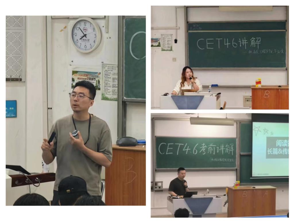 英語(yǔ)四六級(jí)考試在即,機(jī)械工程學(xué)院清朗學(xué)堂邀請(qǐng)多位新東方專任教師為同學(xué)們開展系列重點(diǎn)輔導(dǎo),解讀考試題型結(jié)構(gòu)和考試要求,幫助同學(xué)們掌握有效的學(xué)習(xí)方法和答題技巧,共計(jì)400余名同學(xué)參加。