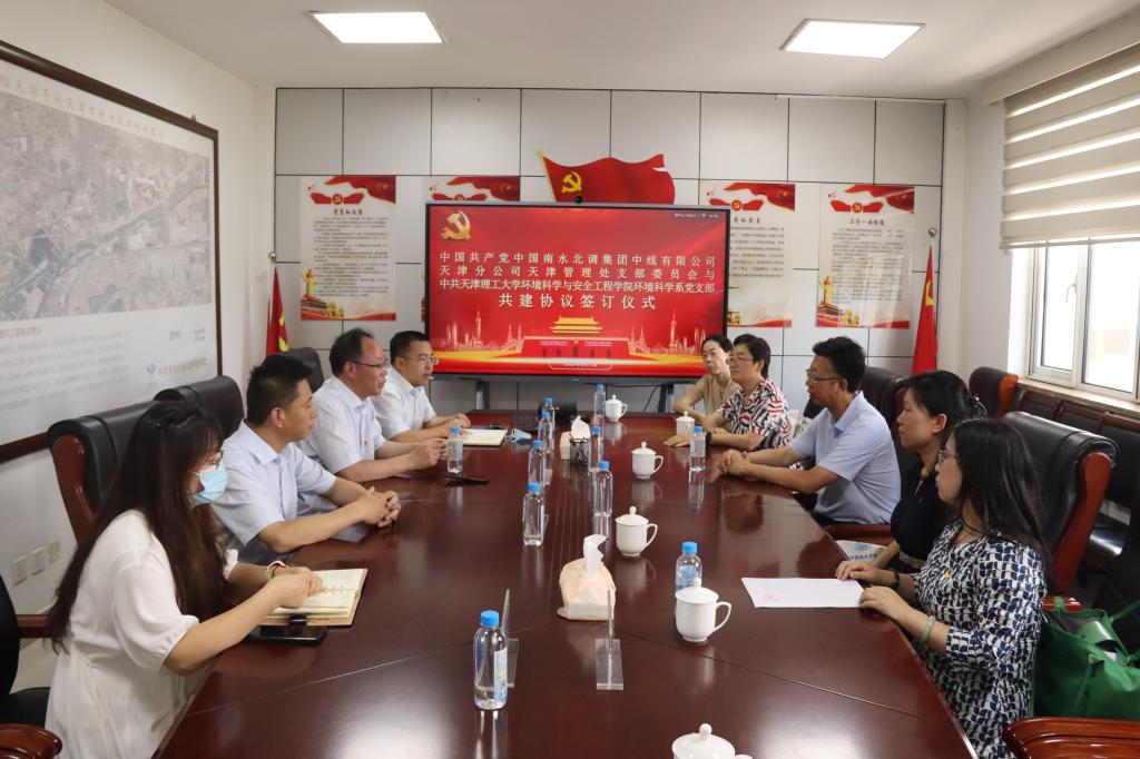 隨后,中國南水北調集團天津管理處黨支部和環境科學與安全工程學院環境科學系黨支部舉行了共建協議簽約儀式。活動上,共建雙方分別介紹了所在黨組織的基本情況,分享交流了黨建工作中的經驗和做法,并就人才供需對接、產教融合、校企合作協同育人等領域進行深入的交流。今后,共建雙方將充分發揮各自優勢,開展組織建設互幫共建,開展人才共育,做到資源互補,形成黨組織、黨員之間的良性互動。