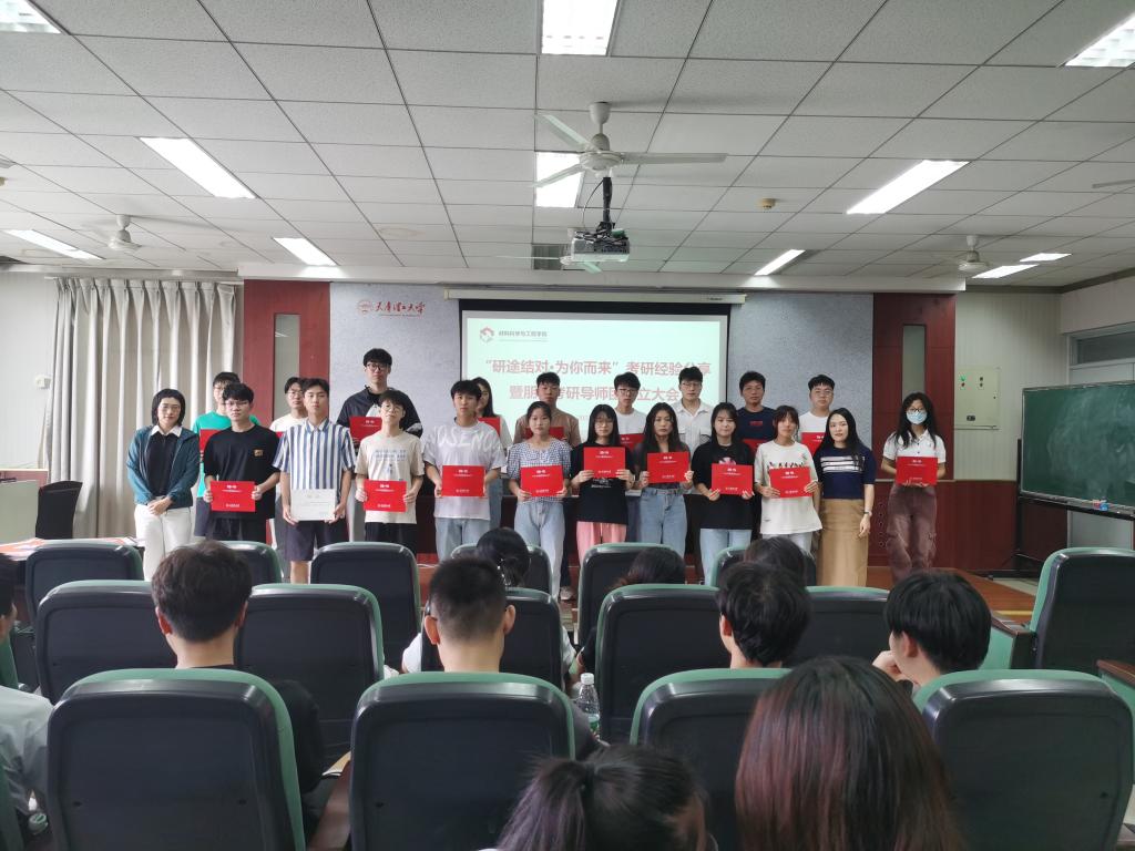 尚以迪老師結合生動案例對同學們進行了考研指導,同時分析了2023屆材料學院考研數據,勉勵2020級同學們要設立合適目標,找準方向,堅持到底;接下來尚老師為2023年上岸的部分研究生代表頒發了朋輩考研導師聘書,希望考研朋輩導師團能充分發揮自己的力量,與學弟學妹積極結對,爭取再創考研歷史新高;最后上岸學生代表進行了考研經驗分享,與現場同學進行了充分的交流和討論。