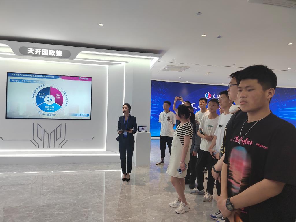 活動中,天津理工大學師生代表走進天開園,實地了解園區規劃和服務,聆聽了天開園的創業服務政策,參觀了創新創業生態、智能科技、低碳科技展區。在綜合服務樓一樓的服務大廳中,匯集企業開辦、政務服務、社保人社、納稅服務等各項業務的“一站式”服務平臺為同學們提供了暖心服務。