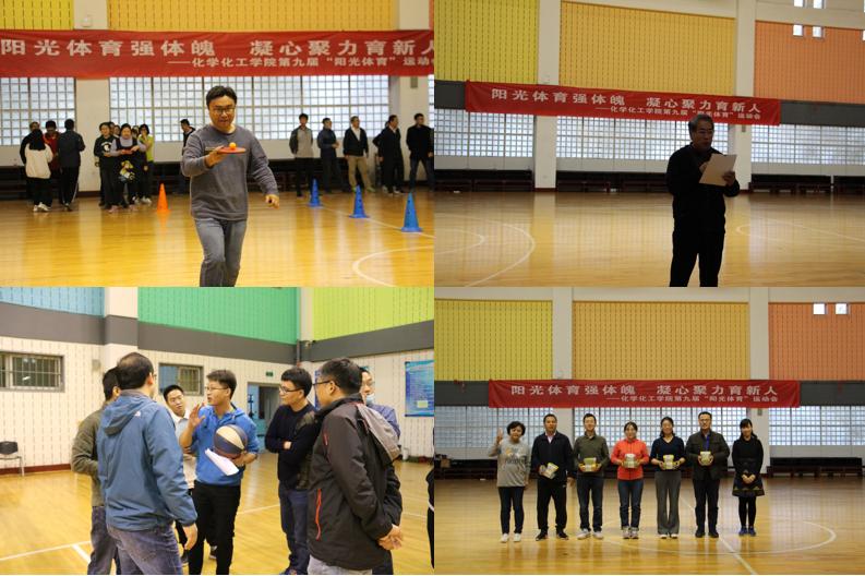 本次陽光體育運動以系為單位自主報名組隊,共分為應化系組、化工系組、制藥基礎系組和行政實驗組。活動項目包括廣播體操、乒乓球、托乒乓球和定點投籃等,采取分項目方式開展比賽。比賽中各參賽隊斗志昂揚、熱情飽滿、奮力拼搏,團隊內協作默契,充分展現了良好的精神風貌和比賽競技精神。經過激烈的比拼,各參賽隊都賽出了風格水平,最終制藥基礎系組和應化系組分別獲得了集體項目的一等獎。