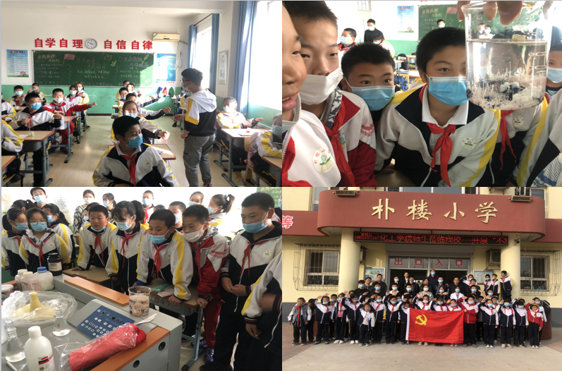 在樸樓小學(xué),學(xué)生們走進小學(xué)生課堂,為他們帶來了生動的愛國主義教育課和有趣的化學(xué)小實驗。帶領(lǐng)小學(xué)生學(xué)習(xí)了解抗美援朝英雄故事,傳承偉大的抗美援朝精神。在實驗課上,有趣的“大象牙膏”、神秘漂亮的“水中花園”和神奇的“懶人剝雞蛋”等實驗不時引發(fā)小學(xué)生們的陣陣掌聲和對于科學(xué)實驗的強烈興趣。隨后,學(xué)院師生還實地參觀考察了樸樓村勝起農(nóng)作物種植專業(yè)合作社和蘋果種植園基地,了解當(dāng)?shù)剞r(nóng)村特色產(chǎn)業(yè)發(fā)展情況,帶領(lǐng)學(xué)生感受勞動實踐教育。