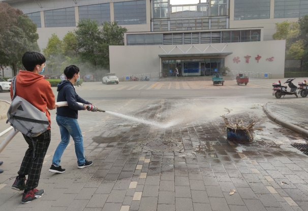 劉博洋老師結(jié)合參加消防險情處理的親身經(jīng)歷及近年來高校不同類型安全事故案例闡明了高校消防安全的重要意義,深入分析了校園消防險情發(fā)生原因,要求大家嚴(yán)格遵守上級關(guān)于安全生產(chǎn)及安全管理的各項規(guī)定,做到安全科研、安全生活、安全求救。安全教育后,石老師對滅火器及高壓水槍的使用規(guī)范進(jìn)行詳細(xì)講解并親自示范操作,2020級研究生有序開展了消防演習(xí)。