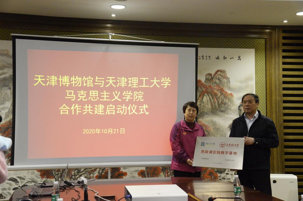 隨后,馬克思主義學院與天津博物館舉行了基地共建揭牌儀式,天津博物館黨委書記、館長陳卓、辦公室主任臧天杰,馬克思主義學院黨委書記王慧、副院長黃閃閃、教師代表楊蓮霞教授等出席儀式,雙方簽署合作共建協議,旨在按照“資源共享、優勢互補、文明共建、共同發展”的原則,在實踐育人、科研互動、黨建活動等方面開展合作。