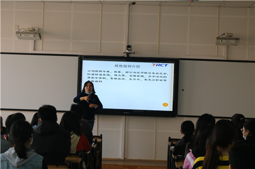 隨后,天津東海理化汽車部件有限公司(管理部人事課系長,學院204級優秀畢業生任鶴麗)在聾人工學院315教室舉辦了專場招聘宣講會。詳細介紹公司的企業文化、招聘崗位、薪資待遇等基本情況,并現場為學生答疑。除此之外,校企雙方就后續實踐基地建立及面試事宜安排達成共識。