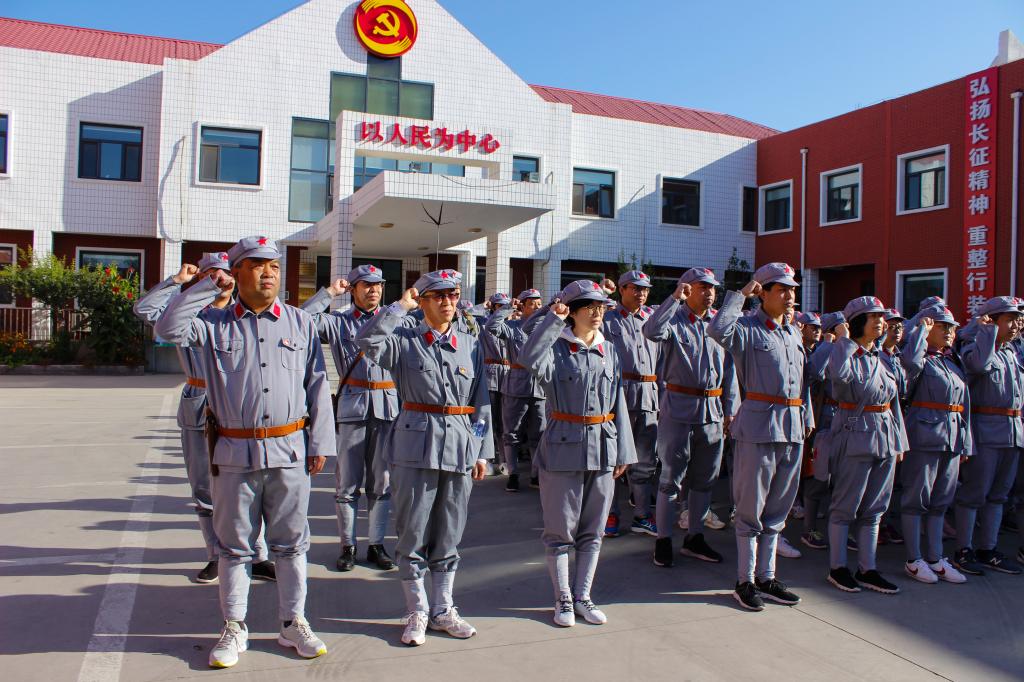 全體黨員身著紅軍軍裝,在黨旗下莊嚴宣誓,并舉行授旗儀式。隨后沿著結合長征歷史設計的紅軍路線,踏上了“長征路”,實地感受紅軍在長征途中的艱苦環境。活動以紅軍長征為背景,經過湘江戰役、遵義會議、四渡赤水、強渡大渡河、飛奪瀘定橋、爬雪山、過草地、懋功會師、激戰臘子口,最終三軍大會師。途中黨員們步調一致,慷慨激昂,高聲齊唱《沒有共產黨就沒有新中國》等歌曲,表達了對革命先烈的緬懷崇敬之情。院黨委書記王樹春在講話中對偉大的長征精神進行了進一步闡釋,并激勵黨員繼承和弘揚好長征精神,在以習近平新時代中國特色社會主義思想的指引下,走好新的長征路。
