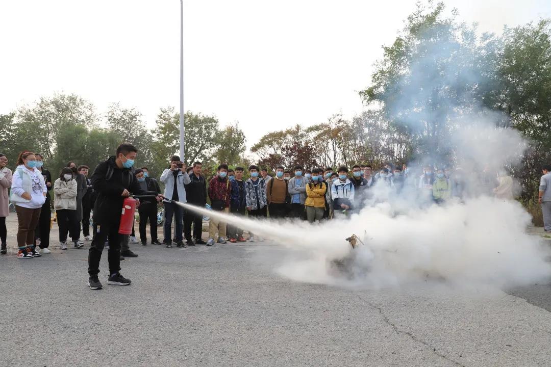 隨后在劉博洋的帶領下,同學們在空曠場地實際操作滅火器和水槍,加深同學們對相關知識的理解。