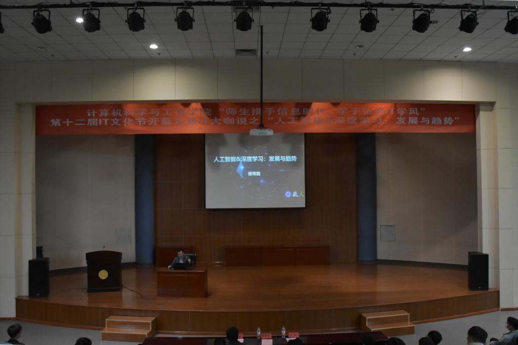 為落實學校“教風學風建設年”的工作要求,培養德智體美勞全面發展的IT學子,計算機科學與工程學院于10月17日在環安報告廳舉辦“師生攜手信息時代 學子弘揚IT學風”第十二屆IT文化節開幕式暨“IT大咖說”首場報告,學院黨政領導及200余名師生代表共同參與了此次活動。