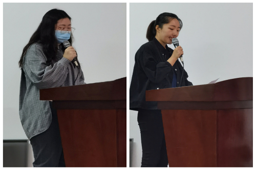 新生代表梅淑亭、在校生代表劉蕊分別上臺發言。梅淑亭同學借竺可楨先生“研究一件事,需要有科學的方法、公正的態度和果斷的決心”倡議同學們要以才學互通、以勤奮共勉。劉蕊同學借自己的研究生經歷,勉勵同學們要珍惜時光,守信求實,通過自己的努力取得更加傲人的成績。