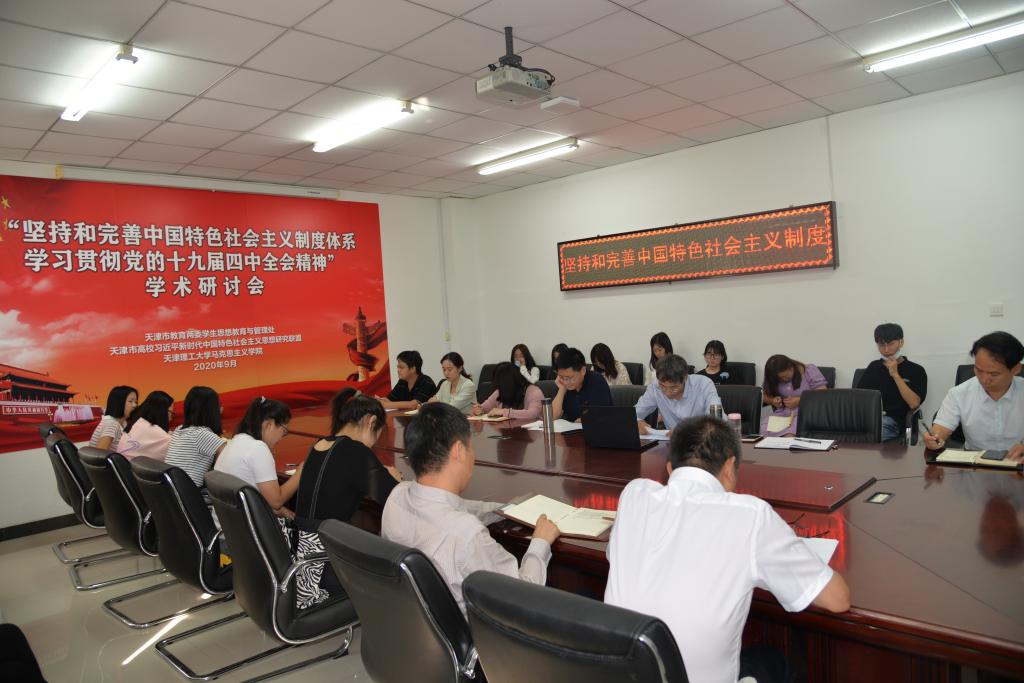 為了全面準(zhǔn)確理解、認真貫徹落實黨的十九屆四中全會精神,天津理工大學(xué)馬克思主義學(xué)院于9月20日上午在學(xué)院412會議室舉行學(xué)術(shù)研討會。本次研討會以“堅持和完善中國特色社會主義制度體系——學(xué)習(xí)貫徹黨的十九屆四中全會精神”為主題,邀請到南開大學(xué)馬克思主義學(xué)院院長劉鳳義教授、山西師范大學(xué)馬克思主義學(xué)院院長賈繪澤教授和武漢大學(xué)馬克思主義學(xué)院李楠教授做主題發(fā)言。馬克思主義學(xué)院領(lǐng)導(dǎo)和全院師生通過線上線下的方式參與會議研討。研討會由馬克思主義學(xué)院副院長喬惠波主持。