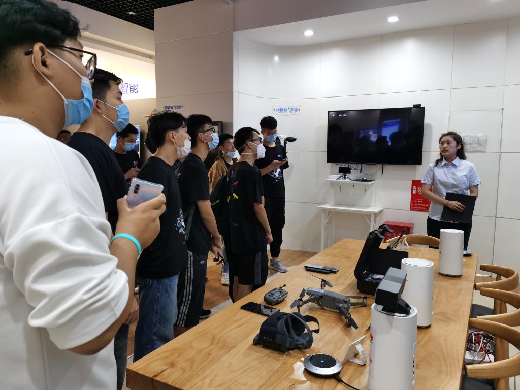 在天翼云5G科技展示中心,講解員介紹5G互聯網技術在實際的具體應用,包括運用在數據上的云計算,中國電信與軍隊監控,政治管理,社會服務,信息化服務方面的相融合。講解后,同學們自由體驗互聯網產品,讓同學們切實體驗科技發展給社會、生產和生活各方位帶來的深刻改變。