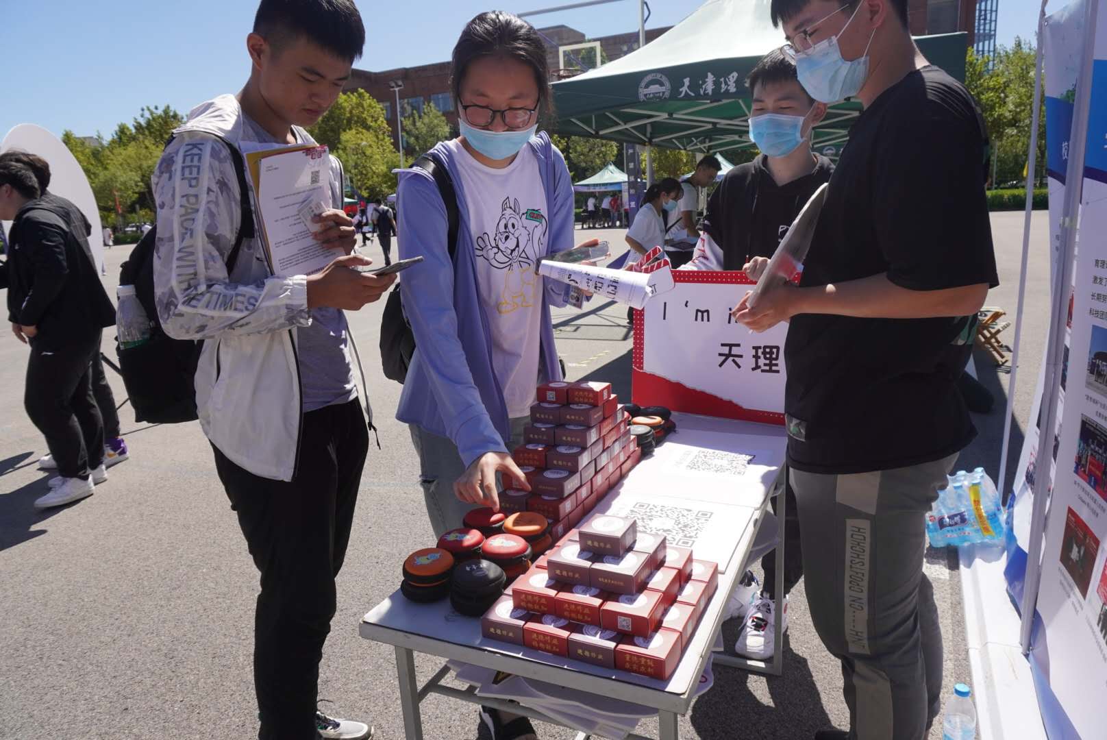 驚喜開啟新征程,育心育德全過程。迎新當日,為更好的發揮環境育人功能,營造全員、全過程、全方位育人的氛圍,學院打造2020級新生融入式教育活動,新生完成報道后,馬上參與轉盤創意活動,完成“立下天理Flag”、“我對天理說”“我和天理同框照”其中一項活動,再隨機挑選帶有學院標識的文創盲盒,使新生在驚喜中快速了解天理文化,增強新生對天理、對3E的認同感和歸屬感。