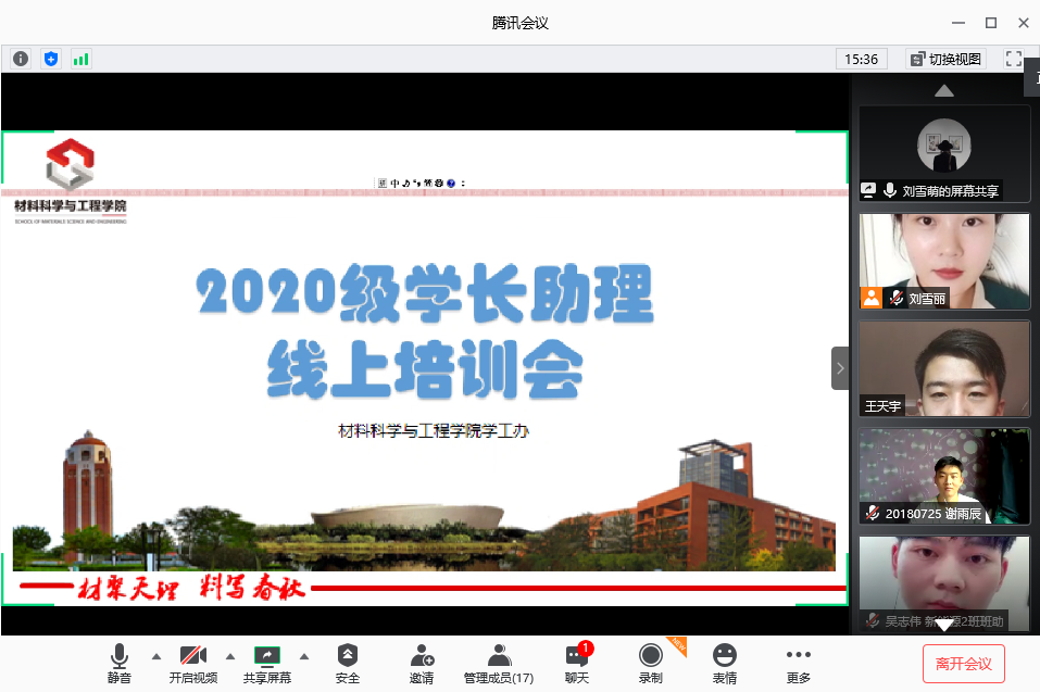 為切實(shí)做好2020級(jí)的迎新工作,進(jìn)一步提高學(xué)長(zhǎng)助理的工作水平,8月20日下午,材料科學(xué)與工程學(xué)院利用線上會(huì)議形式,對(duì)2020級(jí)學(xué)長(zhǎng)助理進(jìn)行了線上培訓(xùn),2020級(jí)輔導(dǎo)員及新任學(xué)長(zhǎng)助理共同參與此次培訓(xùn)。