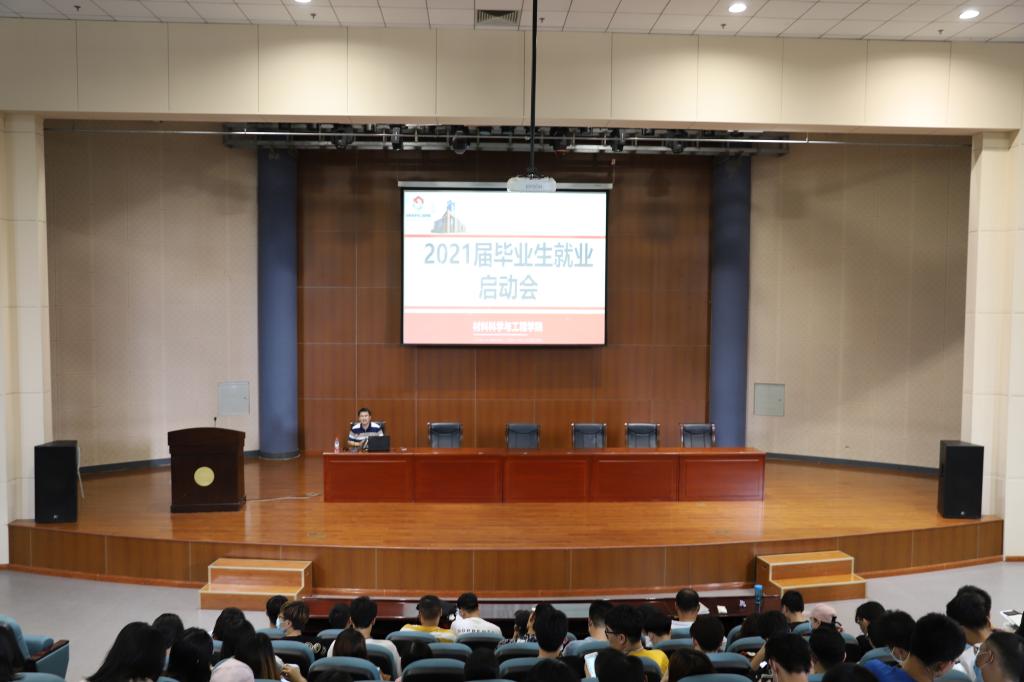 為使2021屆畢業生盡早了解就業形勢,幫助學生樹立正確的就業觀念,做好充足的求職準備和規劃,材料科學與工程學院于近日在環安報告廳通過線上線下相結合的方式面向全體2021屆畢業生召開就業工作啟動會。學院相關負責同志、負責就業的輔導員共同參加此次活動。