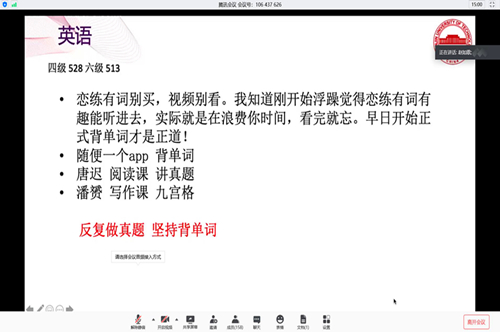 為進一步加強學風建設,落實以優良黨風帶教風端學風的要求,全力推進國家一流本科專業建設,增強學生對研究生考試的認識和了解。6月10日,材料科學與工程學院材料物理專業師生黨支部聯合舉辦線上考研分享會。材料物理專業教師黨支部、學生黨支部全體黨員、2017、2018級本科生共計100余人參加此次會議。