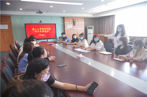最后,學院黨總支書記劉迎綜合分析學院歷年本科生就業情況和今年的就業形勢,并勉勵2020屆畢業生們要攻堅克難,先就業再擇業,腳踏實地,心懷夢想,不抱怨,不氣餒,用自己的雙手書寫燦爛人生。