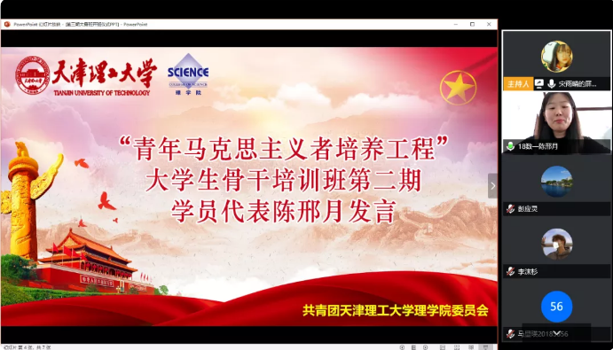 為學習宣傳貫徹習近平新時代中國特色社會主義思想和黨的十九大精神,全面落實校團委關于深入推進“青年馬克思主義者培養工程”的相關要求,加強對我院大學生骨干的思想政治引領,理學院于5月6日通過騰訊會議舉行了“青年馬克思主義者培養工程“大學生骨干培訓班第三期啟動儀式暨第二期結業典禮,理學院黨委副書記初彩霞、團委書記參加此次活動。