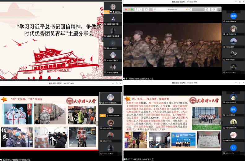 此次主題團日活動,通過線上宣講的方式,向同學們展現了抗疫一線的先進事跡,用榜樣激勵青年成長,講好抗疫故事,做好青年教育引導。勉勵同學們繼承和發揚五四精神,進一步堅定人生理想、樹立遠大人生目標,肩負起時代賦予的崇高歷史使命,在實現中華民族偉大復興中國夢的新長征路上奮勇搏擊。