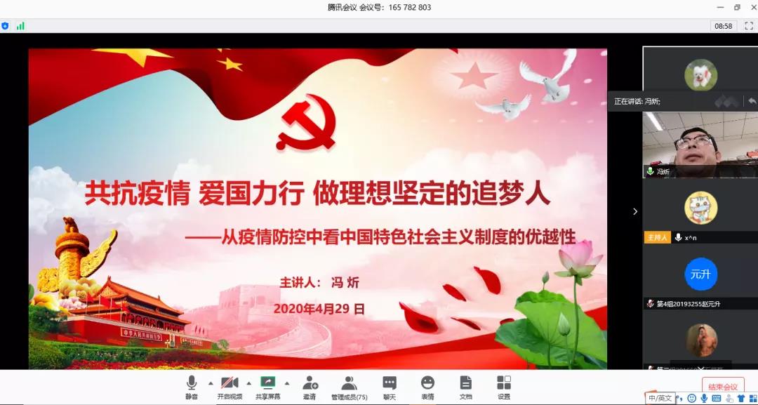 學(xué)院黨委書記馮炘以“疫情防控阻擊戰(zhàn)彰顯中國制度優(yōu)勢”為主題,生動地講述了我國疫情防控阻擊戰(zhàn),彰顯中國堅(jiān)持黨的集中統(tǒng)一領(lǐng)導(dǎo)、中國堅(jiān)持以人民為中心、中國集中力量辦大事的中國特色社會主義制度優(yōu)勢。最后,馮書記向廣大學(xué)員提出了殷切希望,鼓勵同學(xué)們刻苦學(xué)習(xí)、增長本領(lǐng),做一個有遠(yuǎn)大志向和家國情懷的人;做一個作風(fēng)正派、忠誠正直的人;做一個有責(zé)任心、有毅力,不斷進(jìn)取、樂于奉獻(xiàn)的人。